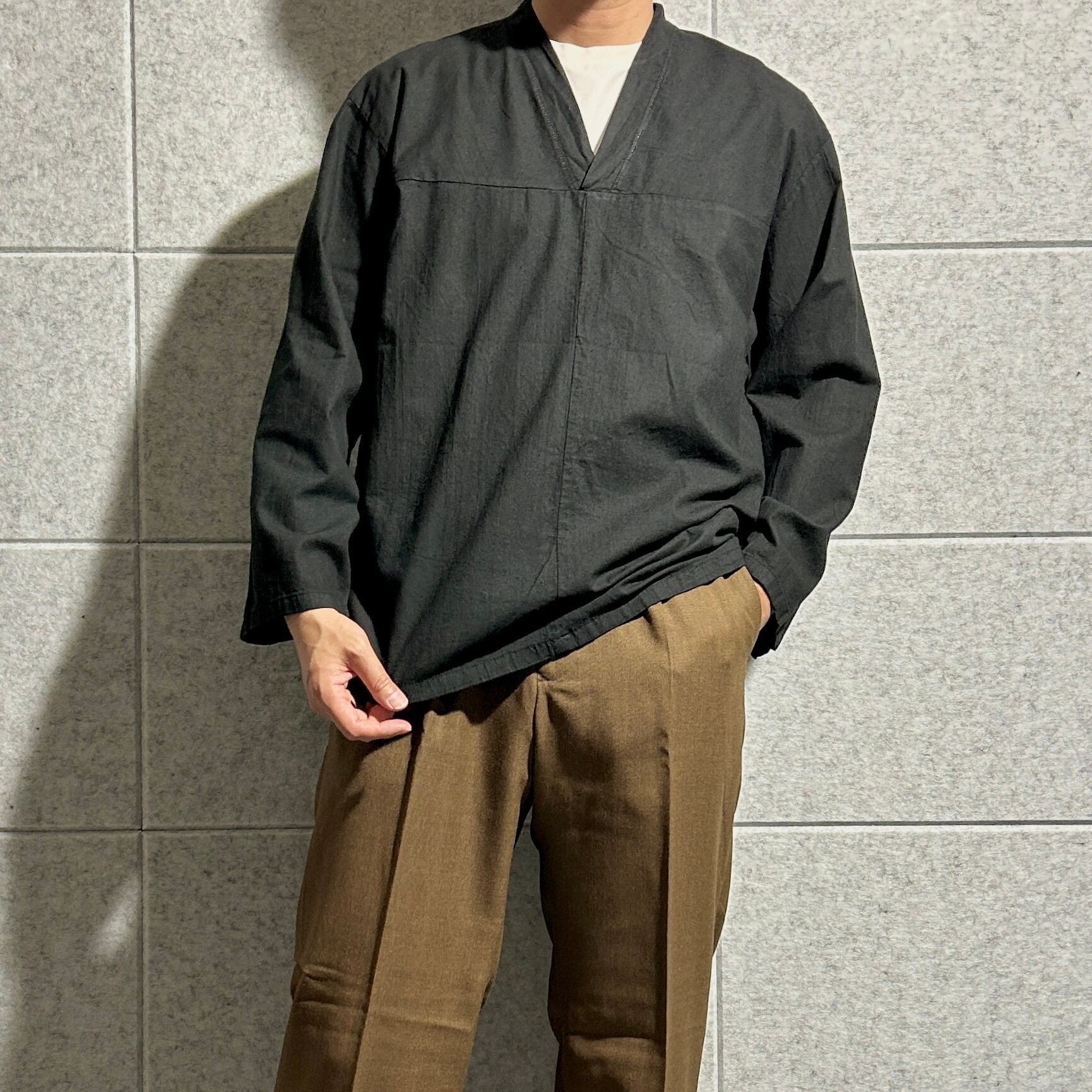 【russian army】【dead stock】sleeping shirt V-neck ロシア軍 デッドストック スリーピングシャツ Vネック 黒染め