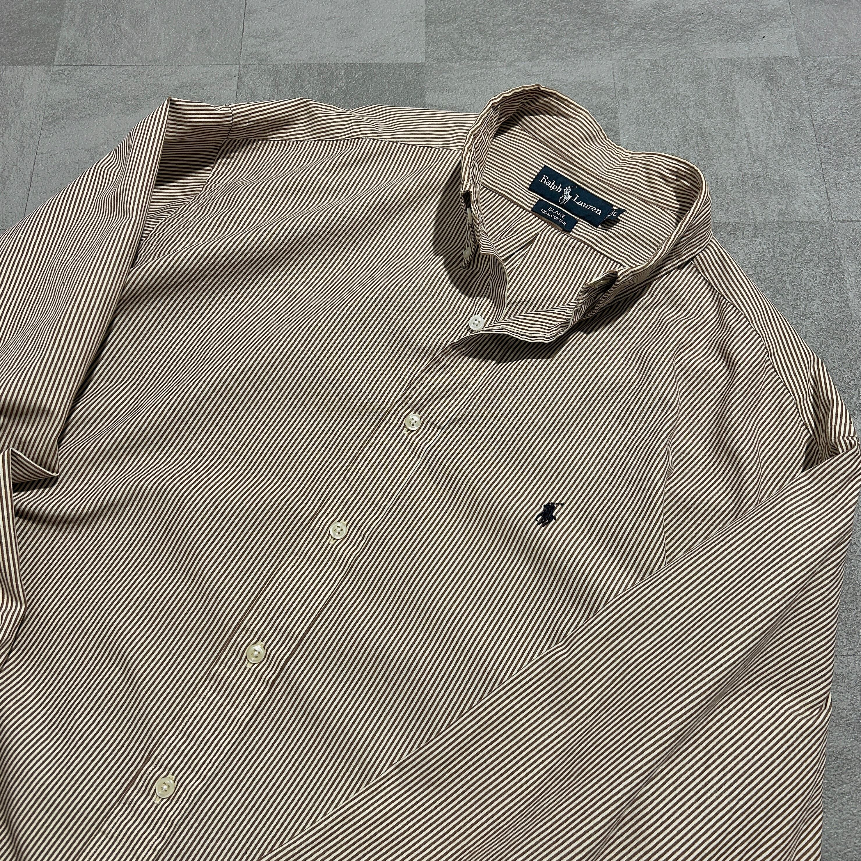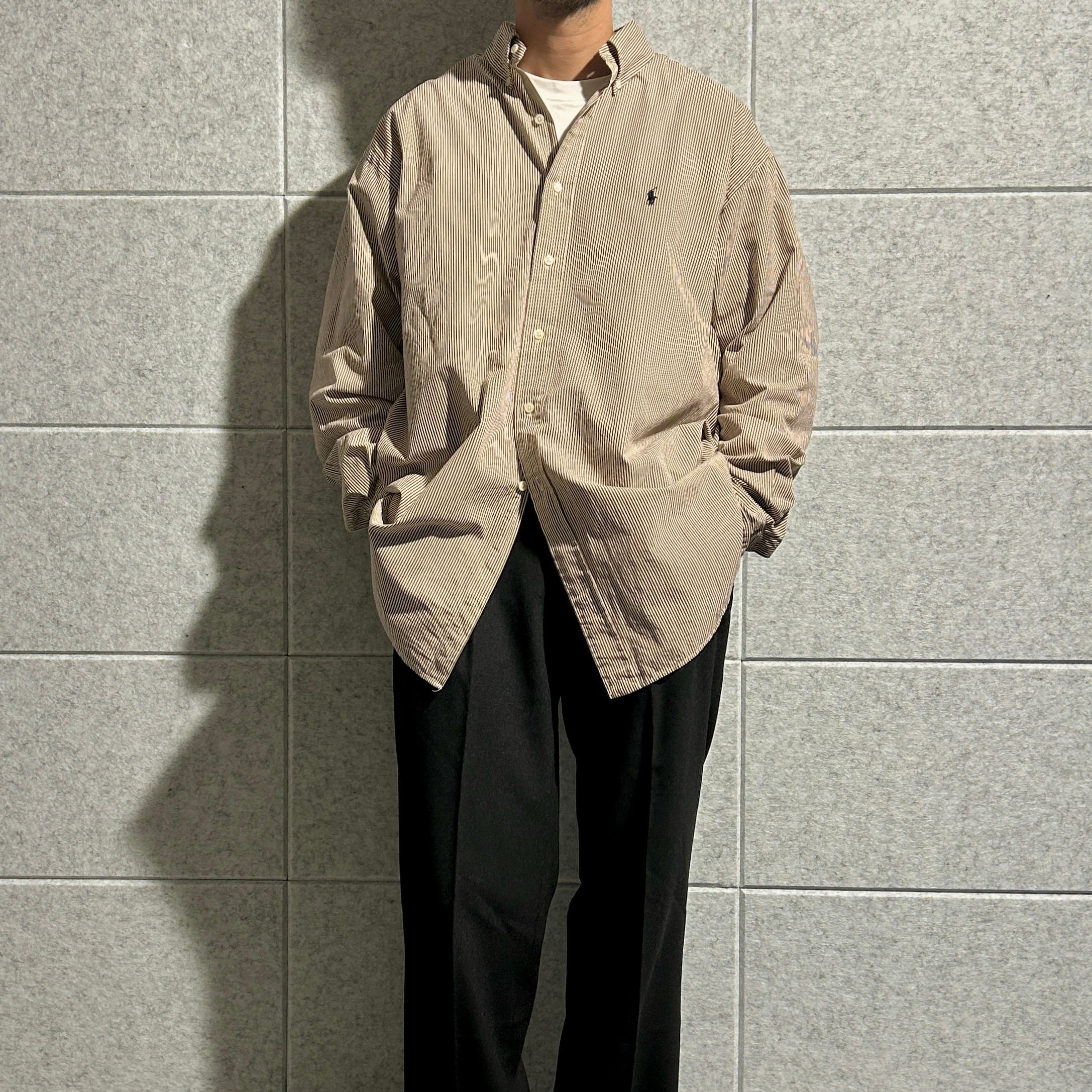 【Polo Ralph Lauren】 【BLAKE】stripe b.d.shirt ストライプボタンダウンシャツ ロンドンストライプ ホワイト ブラウン XL