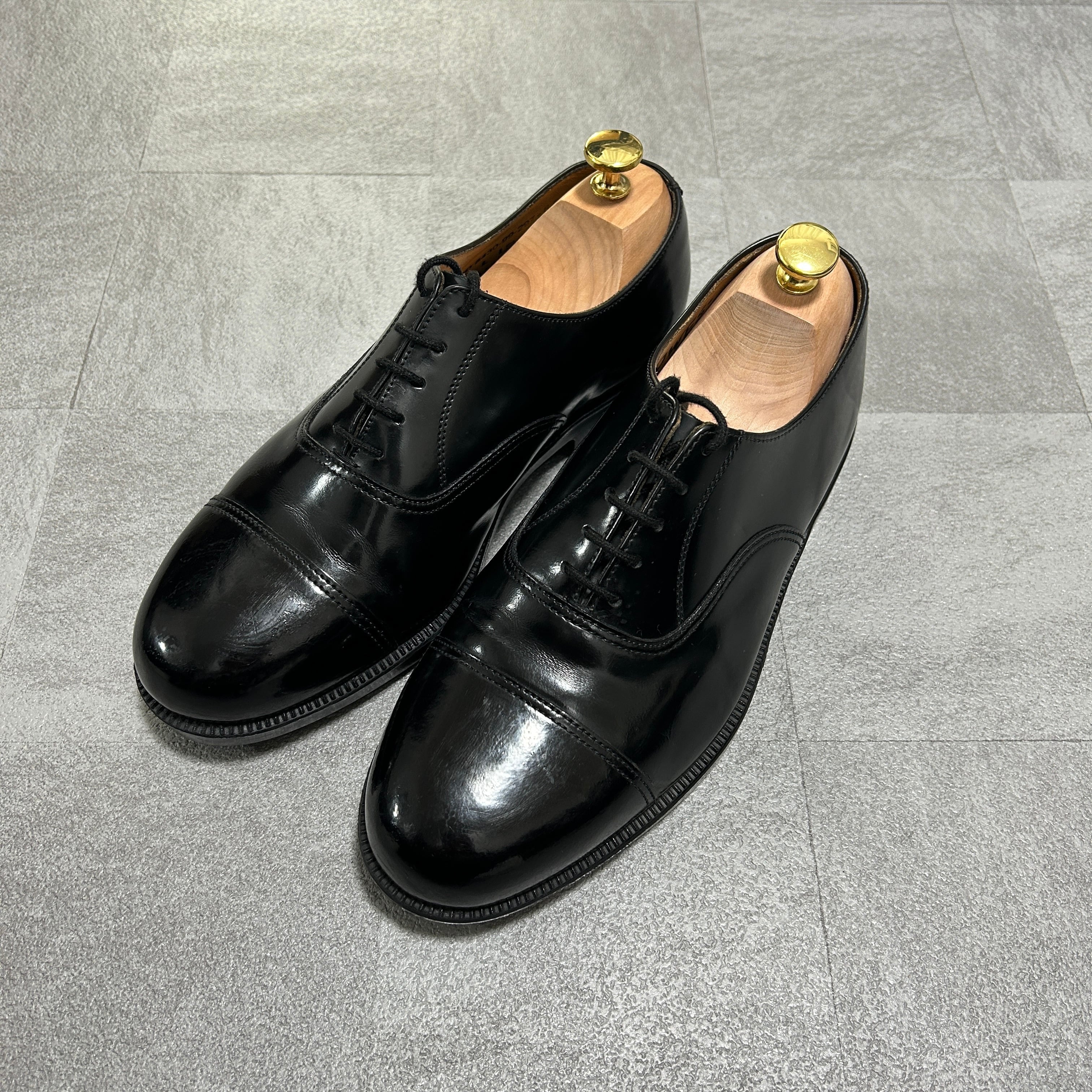 【british military】dress shoes 26.5cm UK8 イギリス軍 オフィサーシューズ ガラスレザー 内羽根式 ブラック サービスシューズ