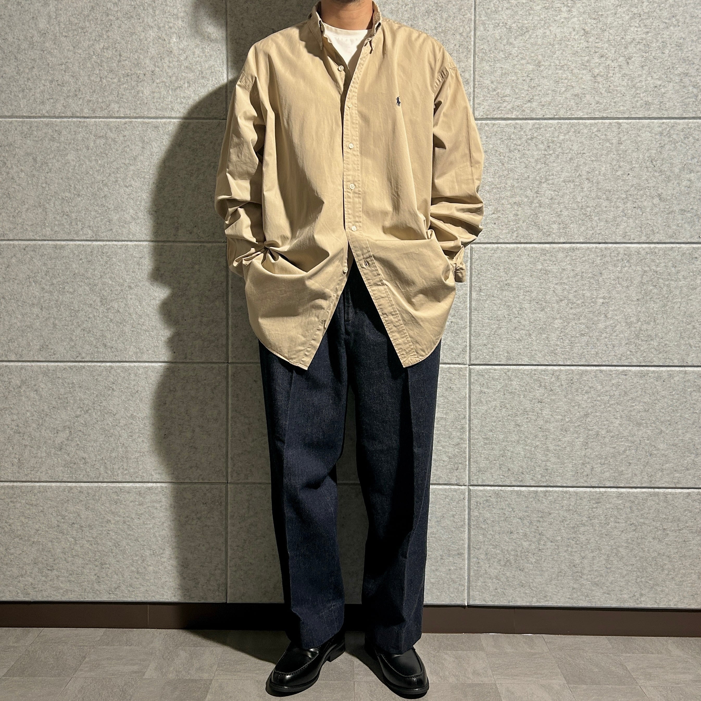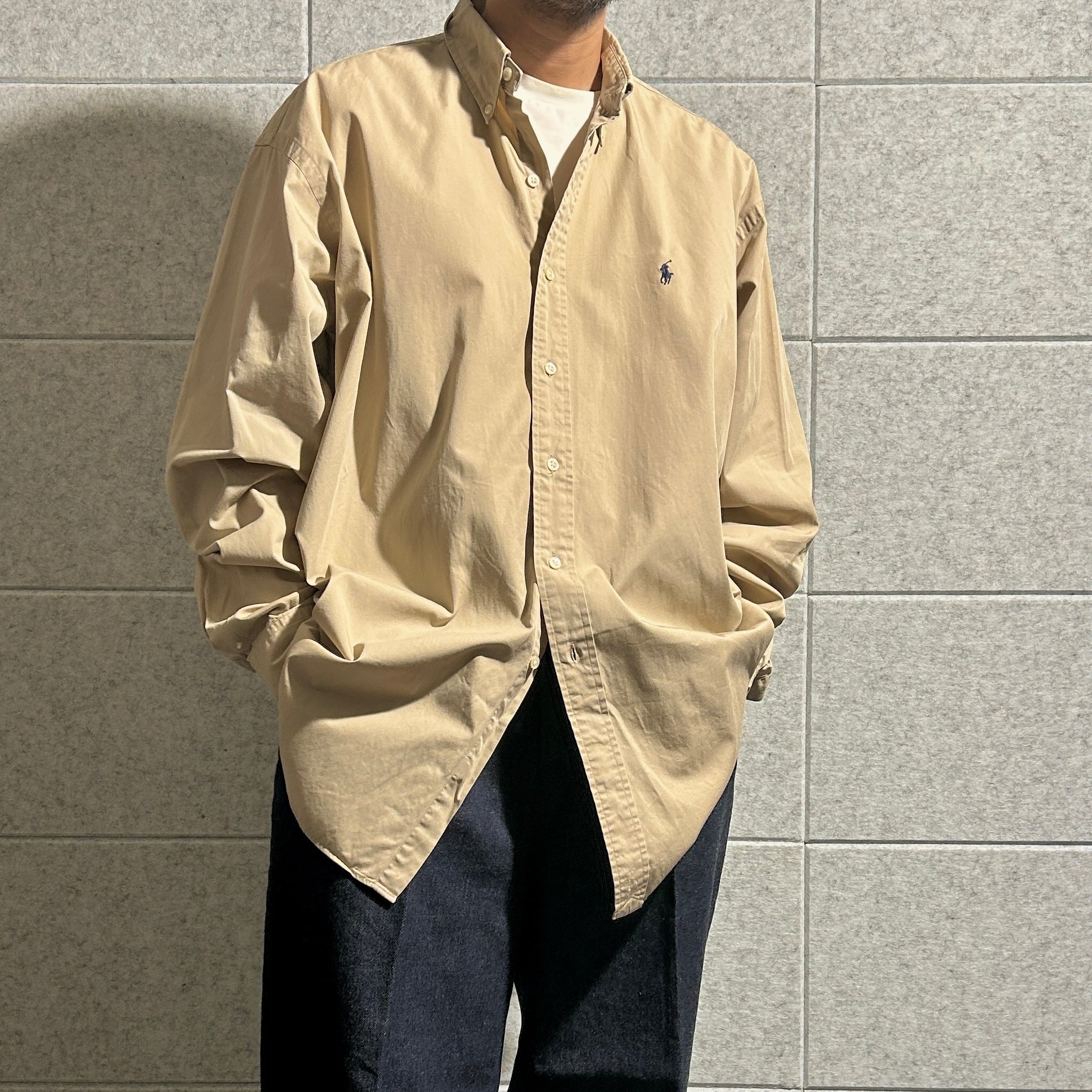【Polo Ralph Lauren】【BLAKE】 twill B.D. shirt コットンツイル ボタンダウンシャツ ベージュ XL