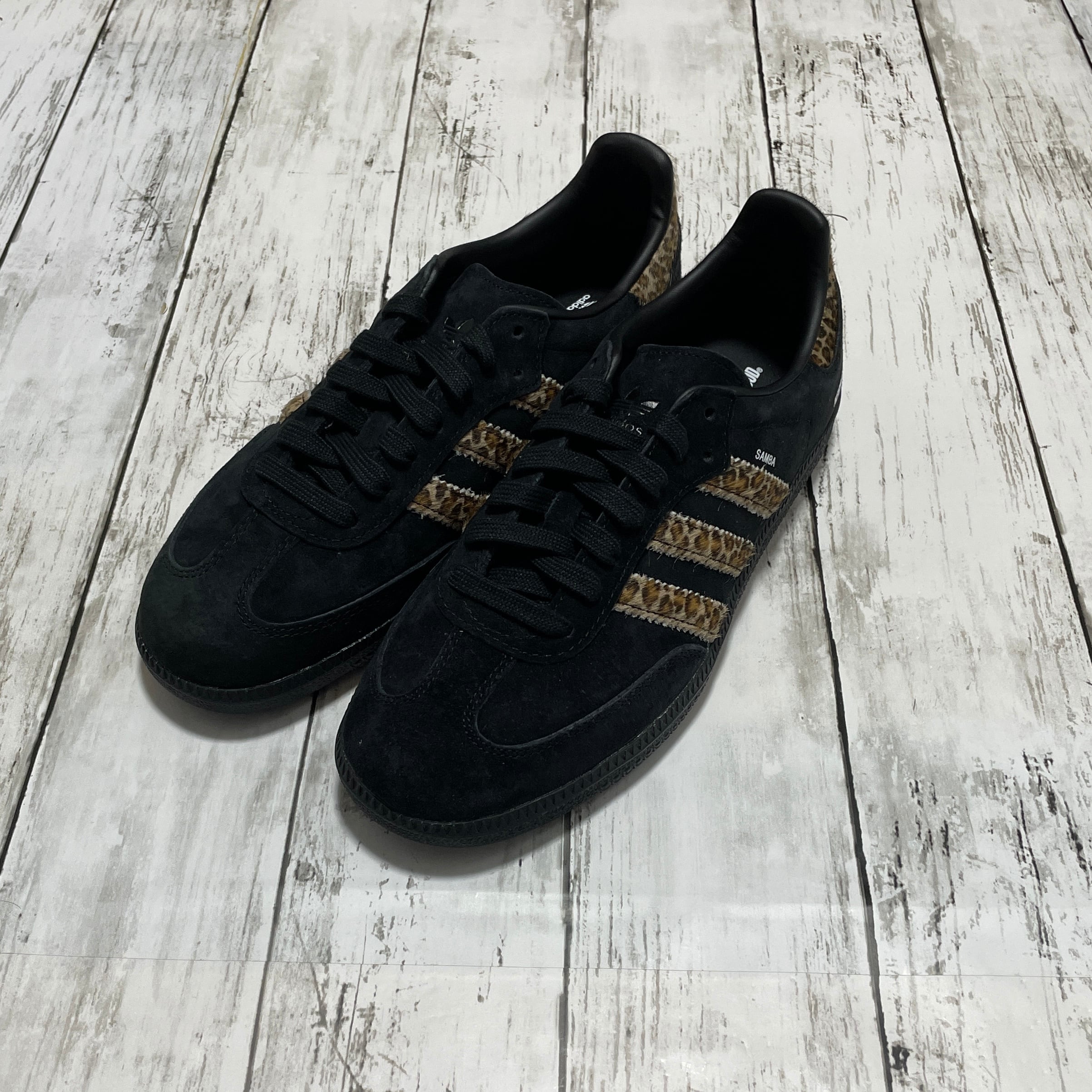 今回はアッパーをブラックスエード、シンボルのスリーストライプをハラコ風のレオパード柄、ソールはブラックでまとめてあり、ラグジュアリーな雰囲気さえ感じられる極上の一品です。
