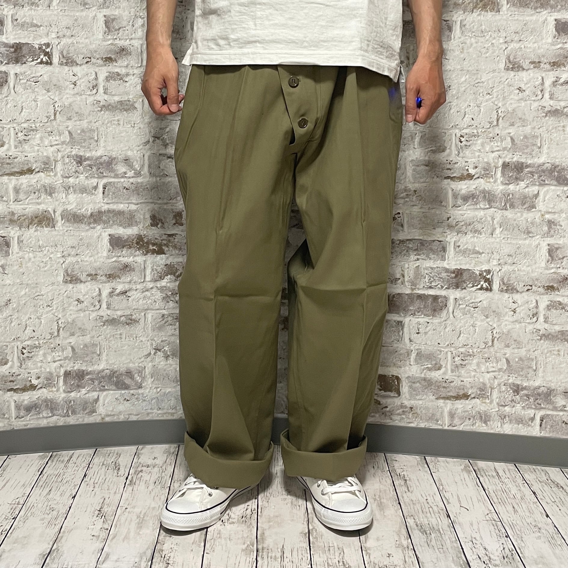 *ワーク・ミリタリーアイテムは縫製不良や個体差も頻繁にあります。検品はしており、状態の酷い物は販売しておりませんが、特有の雰囲気を味わうためにも商品の特長としてお楽しみください。