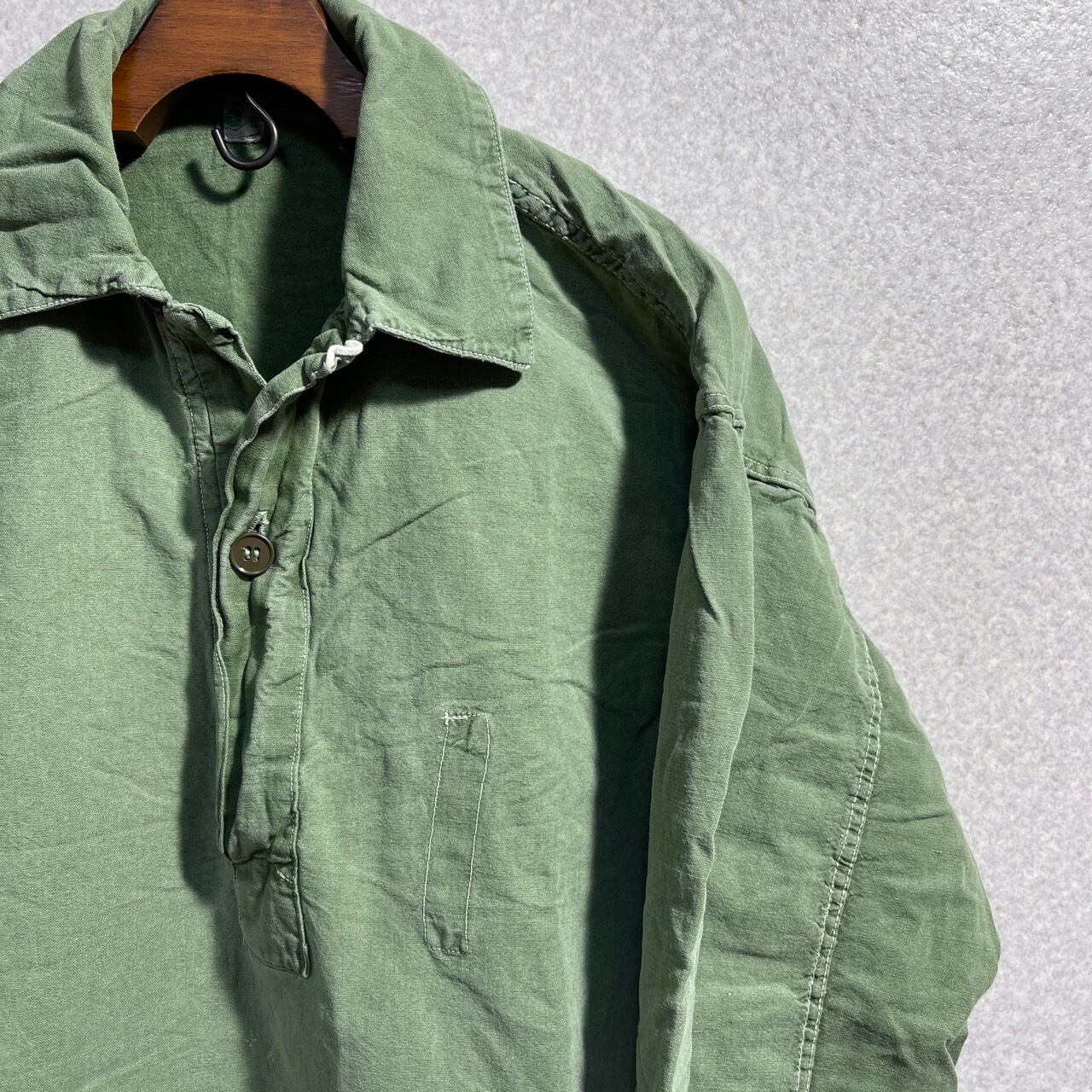 スウェーデン軍が1955年に採用したプルオーバーシャツです。プルオーバーが非常にセンスが良い1着です。ロングレングスのヨーロッパらしい繊細でモードな雰囲気が魅力でもあります。