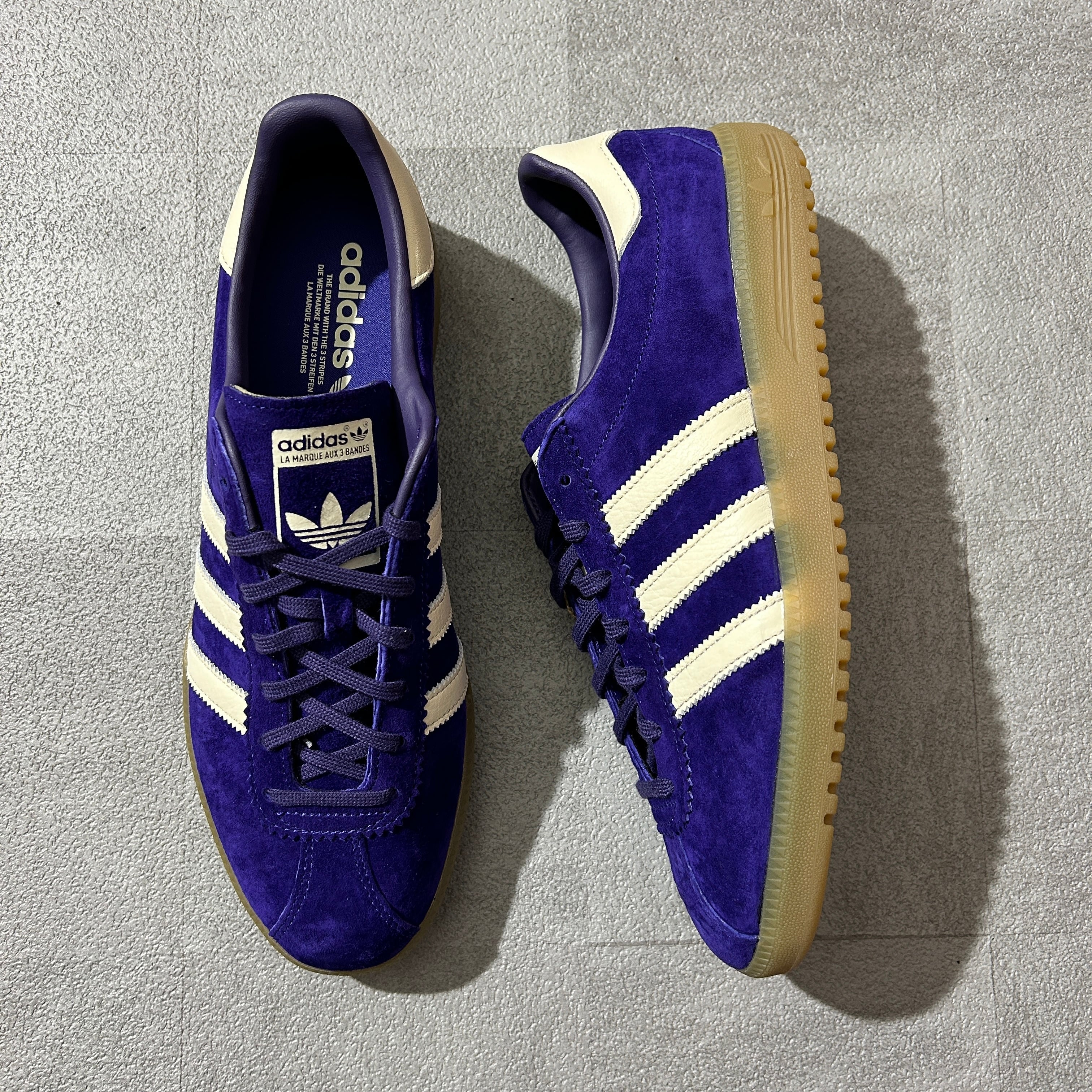 adidasの初期プロダクトの雰囲気を漂わせるギザギザのスリーストライプス、ローテクなすっきりとしたフォルム、そして半透明のガムラバーアウトソールで仕上げたデザイン。